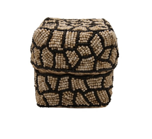 Het mandje is beige van kleur en heeft een zwart motief. De afmetingen van dit offermandje zijn 12x12x12 cm. Omdat de manden handgemaakt zijn, kunnen de afmetingen een beetje afwijken.